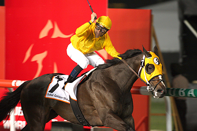 【ドバイWC】グロリアデカンペオンが際どく逃げ切り昨年2着の借りを返す ドバイWC(AW2000m)は現地時間27日、UAEドバイのメイダン競馬場で行われ、ブラジル生まれのフランス調教馬グロリアデカンペオンが、ハナに立ってスローペースに落とし、リザーズデザイアの猛追をハナ差しのいで優勝した。勝ち時計は2分3秒83。さらに短頭差の3着にはアリーバーが入線し、日本のレッドディザイア(松永幹夫調教師)は、中団追走から反応できず11着に完敗した。 レッドディザイアはスタートを決めると、スローペースを見越して好位の直後につける。レースはグロリアデカンペオンを先頭に団子状態で展開し、終始包まれる形になったレッドディザイアは力みの目立つ道中。4コーナー手前のペースが上がった所で、馬群の切れ目から外に持ち出され、直線に向かって追撃を開始した。しかし、ゴーサインを受けても前哨戦のような爆発力はなく、一瞬だけ伸びかかってあえなく失速。最後は余力なくゴールした。 グロリアデカンペオンがハナに向かうと他に主張する馬はなく、1コーナーで早くもペースが落ち着く。背後をアリーバー、外をアモルデポレが固め、その後ろもモール状態での追走。グロリアデカンペオンはマイペースを守って4コーナーから加速し、直線に入ると一気のスパートで逃げ込みを狙う。背後からアリーバーが追い掛け、馬群の後方から中を割ってリザーズデザイアも猛追。その差は見る見る詰まっていき、グロリアデカンペオンとリザーズデザイアが鼻面をそろえてゴール。グロリアデカンペオンの鼻先がわずかに残っていた。 【C.スミヨン騎手のコメント】 「(レッドディザイアが)日本でどんな競馬をしているか知らないから比較はできないけど、パドックで少し興奮していた。スタートからハミを取ったわけではないけど、他の馬に寄られて行きたがってしまった。直線でエンジンがかかり始めた時に外の馬がヨレてぶつかり、それを気にして抜け出せなかった。前走で負かした馬たちが(レッドディザイアに)先着した意味が解らない。色々なレースで色々な名馬に乗ってきたから、レッドディザイアが素晴らしい馬だということは解っているだけに、この結果は残念」 【松永幹夫調教師のコメント】 「前走もスローでしたが、折り合いはついていました。今回もスローだったのですが、道中力んでハミをかんでしまいました。その分、最後で伸びませんでした。今後については帰国してから考えます」 PR 【ドバイシーマクラシック】ダーレミがブエナビスタを抑えて最強牝馬に ドバイシーマクラシック(芝2410m)は現地時間27日、UAEドバイのメイダン競馬場で行われ、イギリスから参戦の欧州最強牝馬ダーレミが、先頭から離れた集団の前々で流れに乗り、後方から続いたブエナビスタ(松田博資調教師)の猛追を3/4馬身抑えて優勝した。勝ち時計は2分31秒84。さらにアタマ差の3着にはスパニッシュムーンが入線した。 互角のスタートを切ったブエナビスタはじっくり序盤戦を進め、向正面では中団より後ろ、後方5番手辺りで流れに乗る。離して逃げるプレシャスパッションとの差は15馬身余り。3コーナーから4コーナーにかけて一団となり直線に向かうと、馬群の中に突っ込んでダーレミの背後からスパートする。外からディーム(4着)にフタをされ、ダーレミの内を狙ったが、同時に相手も内へ。外に開いたスペースへ再び切り替え、残り200mを切って懸命に追い上げるも、スムーズさを欠いた分だけ惜しくも及ばなかった。 ダーレミは先頭から10馬身ほど離れて続く集団の3番手あたりにつけ、流れに任せての追走。縦長の隊列が3コーナーを過ぎて一団になると同時に進出を始める。直線は馬場の三、四分所から末脚を伸ばし、内のスパニッシュムーンとの追い比べ。背後からブエナビスタとディームにも追い立てられる形になったが、スパニッシュムーンを振り切ると、代わって外から猛追したブエナビスタにも先を譲らず寄り切った。 【松田博資調教師のコメント】 「まぁまぁ良かったかな。馬は強かった。ペースが遅かった割にがんばったと思う。この後は馬の状態を見ながら考えるけど、今日のところは無事に帰ってきてくれてよかった。(ファンへ)応援してくれてありがとうございます。負けてしまったけど、次もどうぞよろしく」 【O.ペリエ騎手のコメント】 「(ブエナビスタは)パドックで跨った感触は良かったし、今朝、厩舎に見にいった時もリラックスした感じで良かった。スタートで一気に飛び出して掛からないようにするため、返し馬を強くやらなかったけど、ゲートの中で興奮していた。道中で他馬にぶつけられても影響はなかったし、4コーナーで外にふくらむ形になったのも計算通り。非常にタフな馬だね。順調に行けば、ガイセンモンショウに行ってもいいのでは。10月1週目(凱旋門賞ウィーク)の前に日本で1回乗りたいね。(ファンへ)マイドオオキニ」 【ドバイゴールデンシャヒーン】キンセー